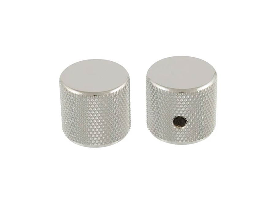 Barrel knobs (2), flat top, with set screw, fits USA solid shaft pots, 3/4" x 3/4".