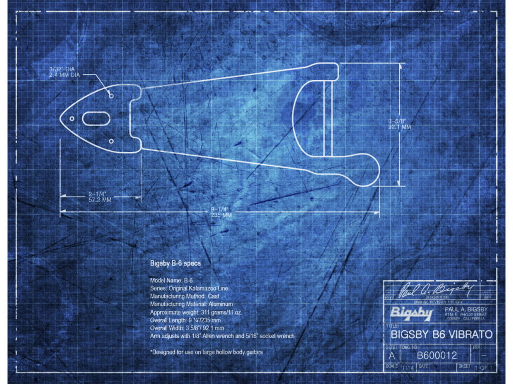 The Bigsby vibrato tailpiece (or Bigsby for short) is a type of mechanical vibrato device for electric guitar designed by Paul A. Bigsby. The device allows musicians to bend the pitch of notes or entire chords with their pick hand for various effects. BIGSBY B3 left handed Vibrato for semi hollow body.