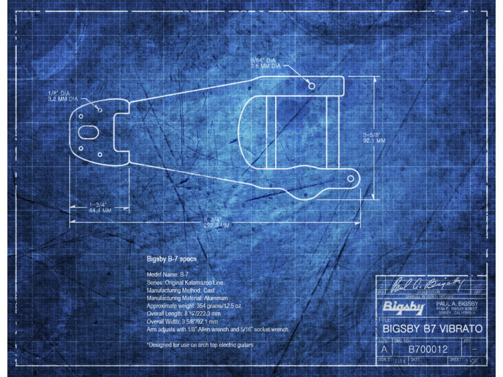 BIGSBY B7 Vibrato with bridge for solid, arched body (AL)