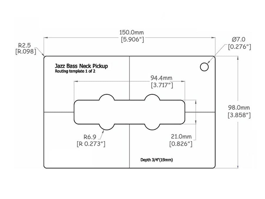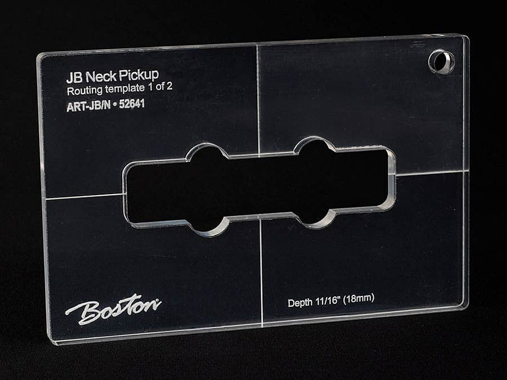 Pickup routing template made of 8mm thick clear acrylic to create perfectly shaped pickup cavities. Accurate template placement is easy: crystal clear routing templates allow you to see the guitar body underneath. Simply align the template's laser etched centre lines with the markings on your guitar to get the placement right every time.
