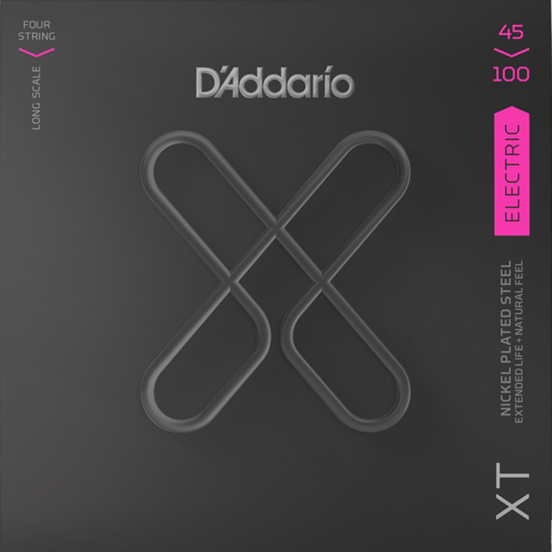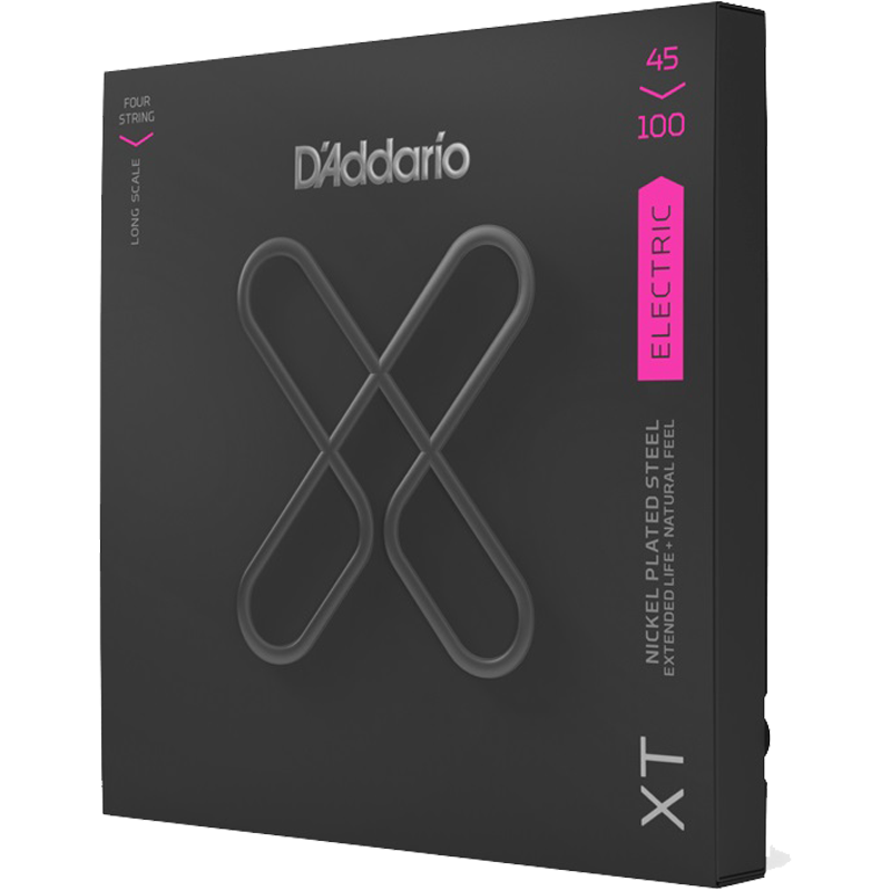 D'Addario XT Bass Nickel Plated Steel strings combine our most popular electric bass guitar alloy with an advanced corrosion resistance treatment on every string in the set, preserving the natural tone and feel of uncoated strings. Available in a variety of gauges for 4 and 5 string, long scale basses.