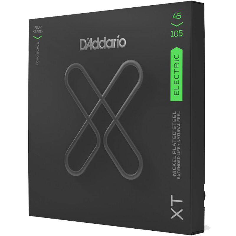 D'Addario XT Bass Nickel Plated Steel strings combine our most popular electric bass guitar alloy with an advanced corrosion resistance treatment on every string in the set, preserving the natural tone and feel of uncoated strings. Available in a variety of gauges for 4 and 5 string, long scale basses.