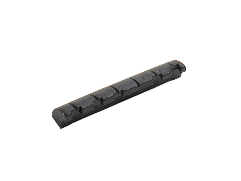 Different than regular string nuts, the slots of the Earvana Shelf Nut end with a slight offset, not in a straight line. This results in better intonation on the first frets.