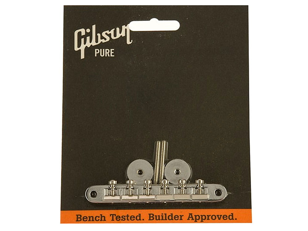 Legendary Gibson tune-o-matic bridge. The ABR-1 is slotted directly into the body of the guitar using a separate stud and thumbwheel.
