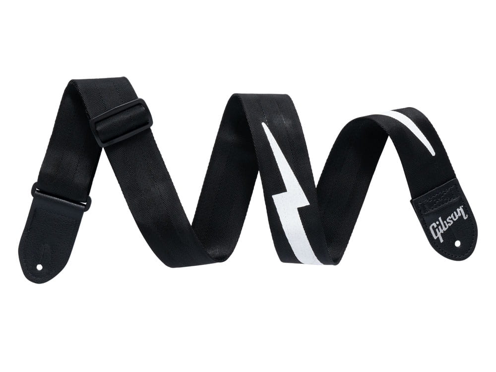 This USA-made 2” wide strap is adorned with a lightning bolt graphic and is made from tubular nylon with vegan leather ends and can be adjusted from 36” to 65” to accommodate the needs and preferences of a wide range of players.