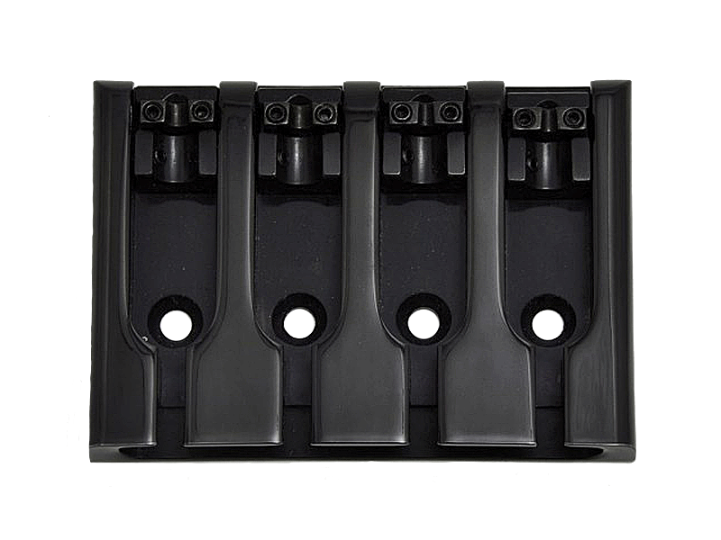 The solid base plate and the single bridges are diecasted like a Badass bridge. The lockable saddles for each string are made of steel. Great combination of materials. Great sound! String spacing 19mm +/- 1mm.