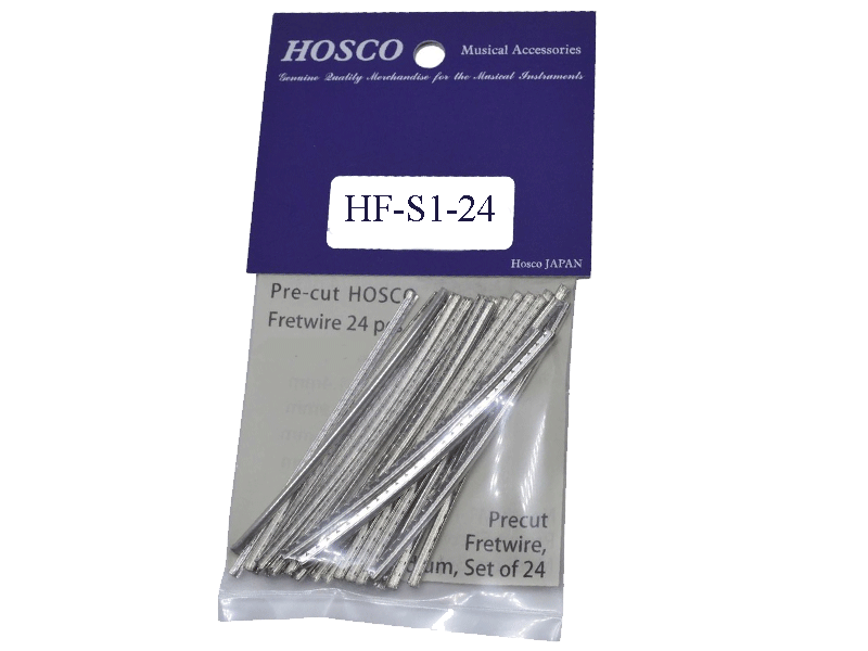 Set of 24 high quality, slightly curved frets from Hosco. Harness HV175 18% nickel-silver material. Each piece 69mm long.