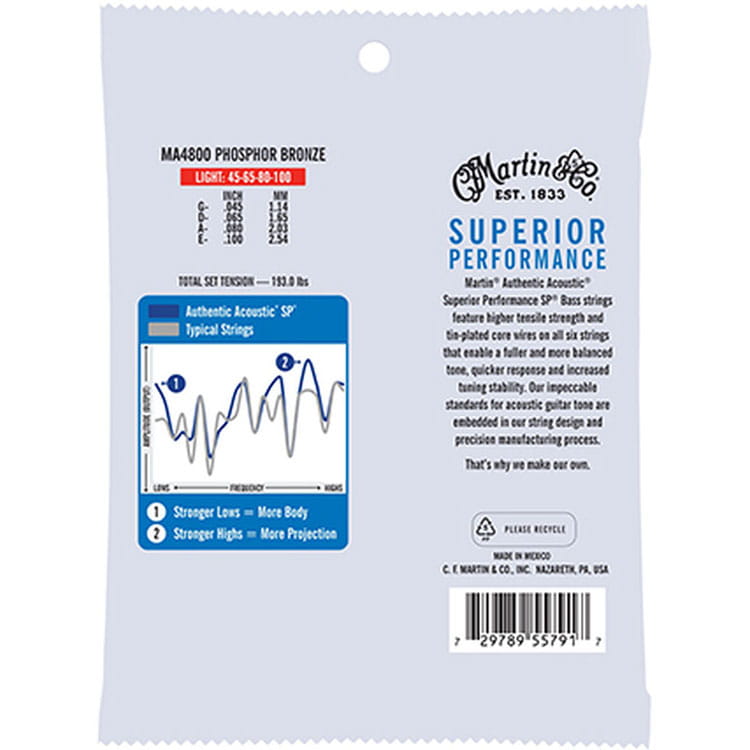 Martin Authentic Acoustic Bass strings offer excellent tuning stability, corrosion resistance, and great playability.