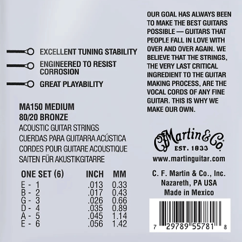Martin Authentic Acoustic SP® strings offer excellent tuning stability, corrosion resistance and great playability.