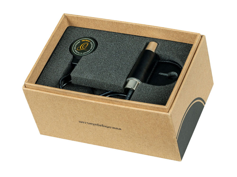 Includes pickup w/cable, permanent double-sided adhesive tape (2x, removable plasticine pad)