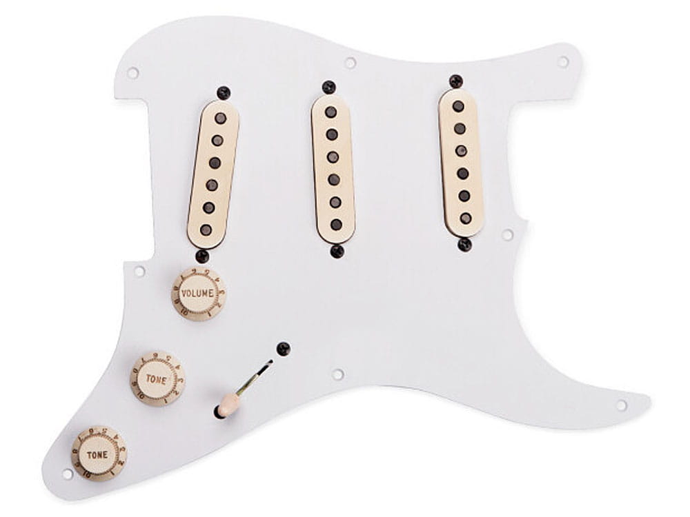 The Antiquity Texas Hot pickups are made using our custom wind and specially aged Alnico II rod magnets to give you that unique vintage spank and sparkle. You will find the tone of this preloaded pickguard to be as authentic as its look. Each Antiquity Pickguard is personally signed by Seymour. We use single-ply white matte pickguard material with the classic 8-hole screw pattern.