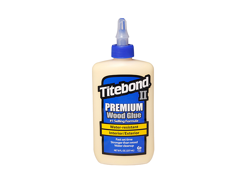 Titebond II Premium Wood Glue is the only leading brand, one-part wood glue that passes the ANSI Type II water-resistance specification. It is ideal for exterior woodworking projects, including outdoor furniture, birdhouses, mailboxes, planters and picnic tables. Titebond II Premium provides a strong initial tack, fast speed of set, superior strength and excellent sandability. It is FDA approved for indirect food contact (cutting boards) and is ideal for radio frequency (R-F) gluing systems.