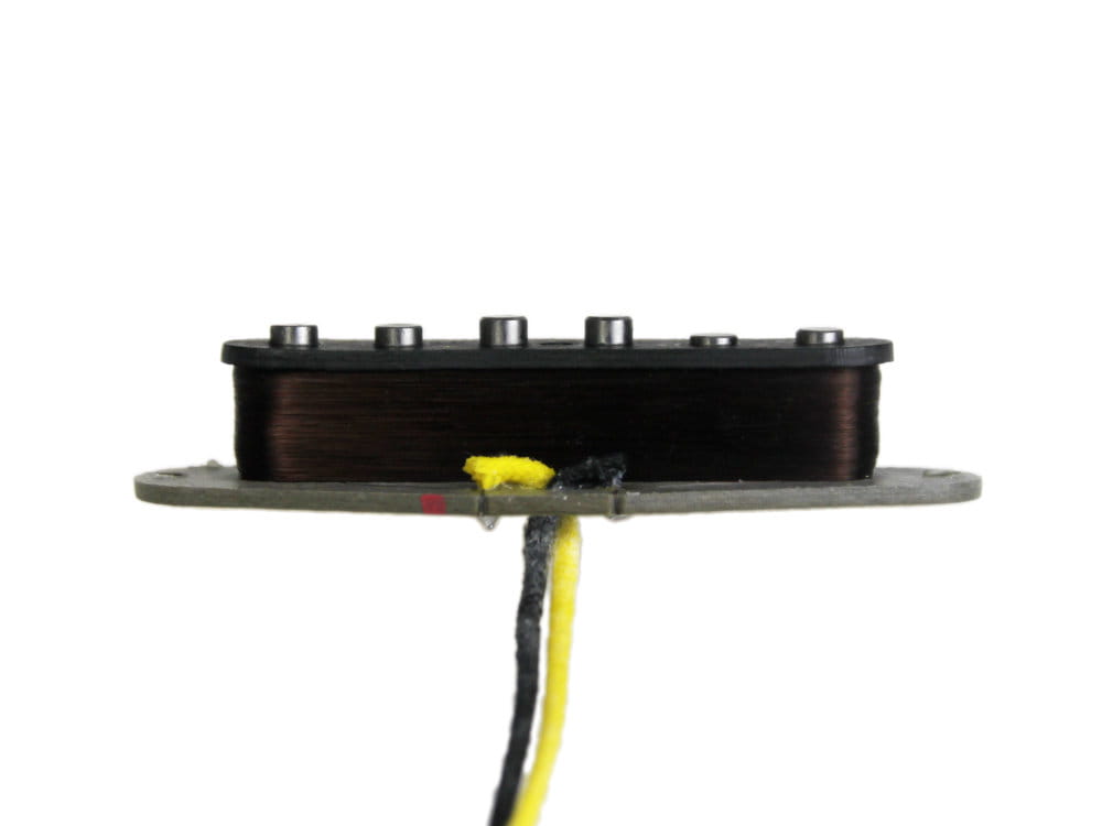 For these pickups, we used Plain Enamel wire insulation, which guarantees a bright, clear sound that is slightly warmer than Heavy Formvar, while still maintaining excellent note separation even with heavier, saturated tones. This type of wire also emphasizes midrange tones and increases the pickup’s dynamics. The Alnico 5 version offers a slightly brighter and more powerful sound than the Alnico 2 version, which provides greater articulation sensitivity and a more balanced tone.
