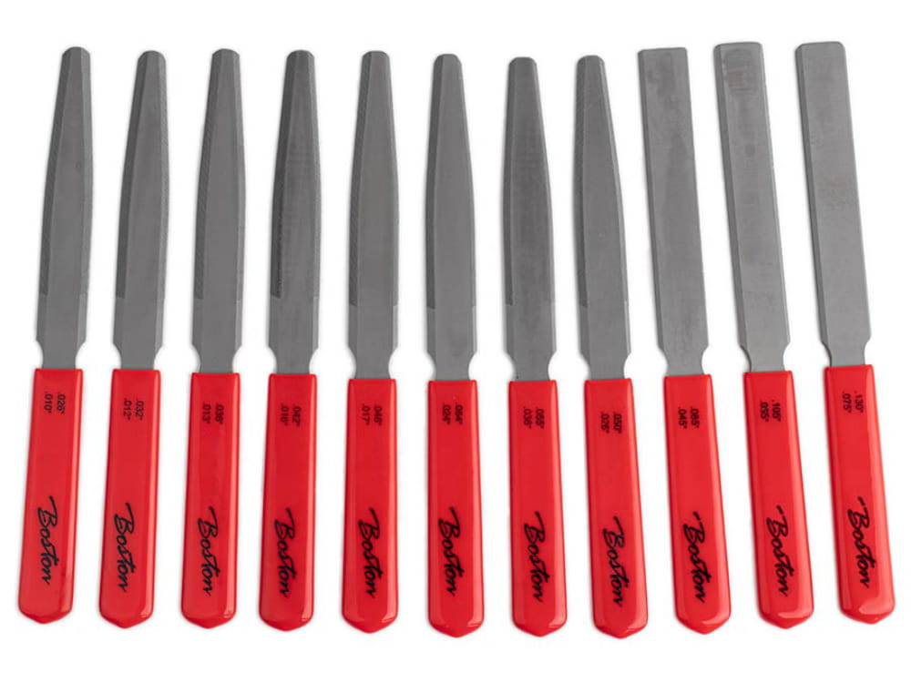 Dwustronny pilnik do nacinania siodełek pod poszczególne grubości strun.