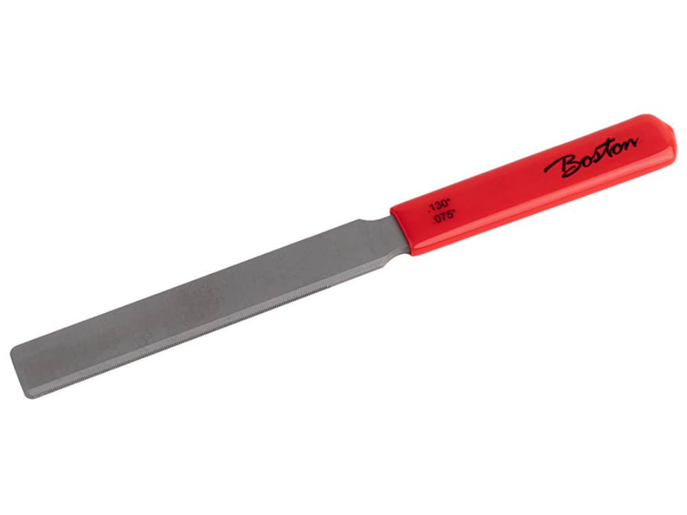 Dwustronny pilnik do nacinania siodełek pod poszczególne grubości strun.
