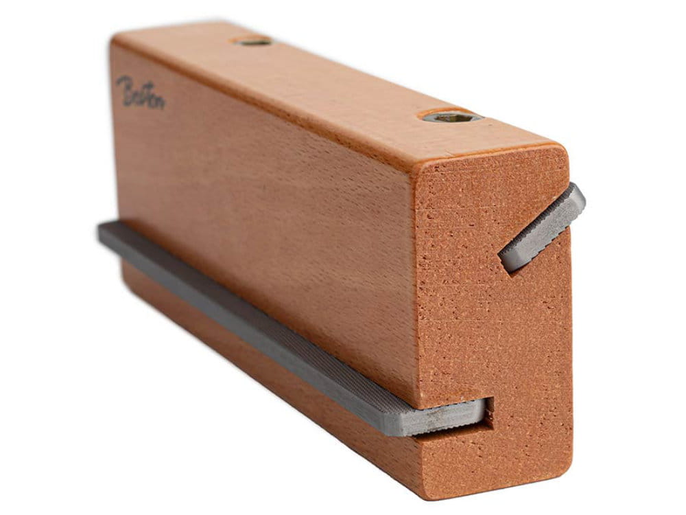 Blok z pilnikami do szlifowania / fazowania końcówek progów pozwala na precyzyjne wykończenie progów pod kątem 90 lub 25 stopni.