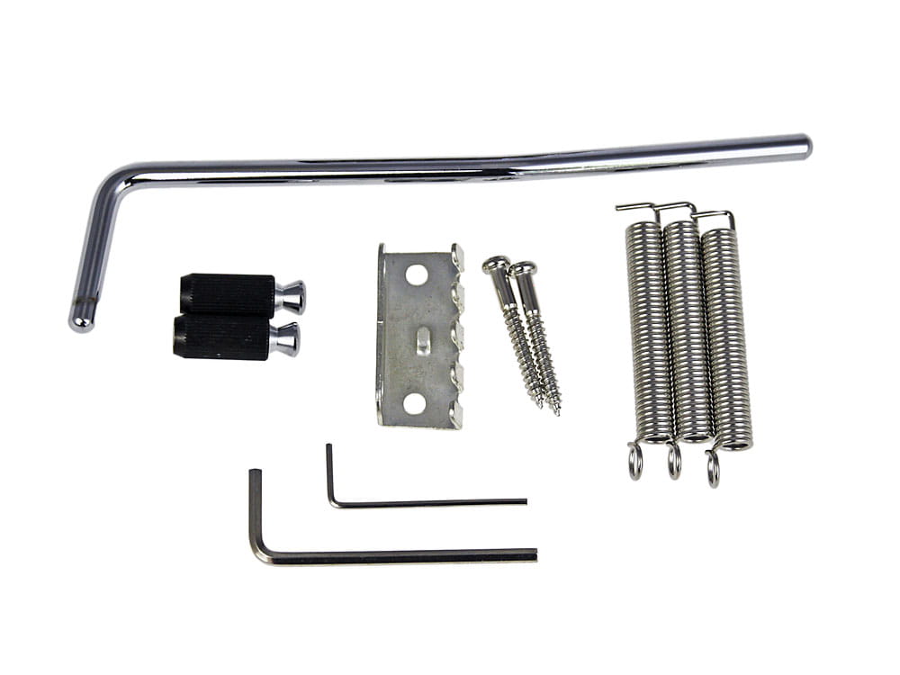 W komplecie wciskane ramię tremolo, zaczep sprężyn z