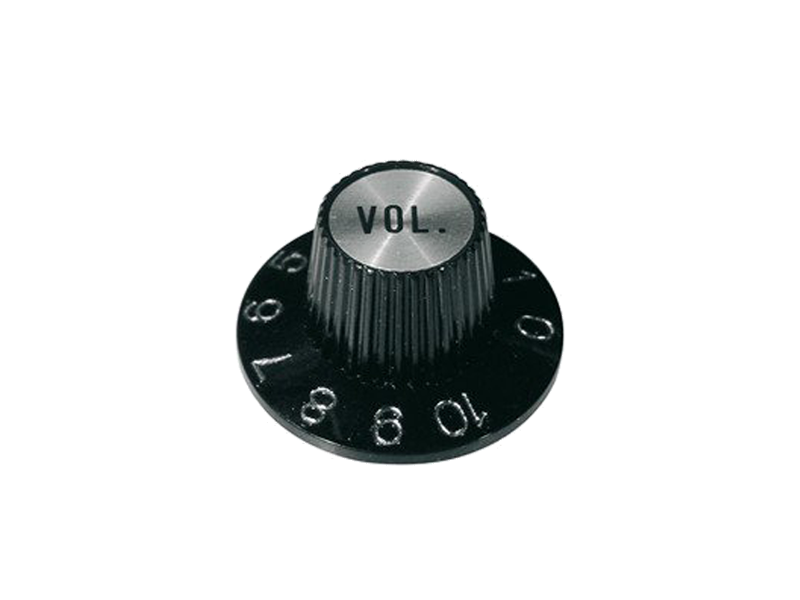 Wciskana, calowa gałka typu "witch hat". Srebrny top z napisem "Volume". Gałki Witch Hat (zwane także Amp - od podobieństwa do gałek we wzmacniaczach Fendera) pojawiły się pod koniec 1966 w gitarach firmy Gibson serii ES i były stosowane do 1981 roku. W późniejszym okresie stosowane były również w gitarach Fender'72 Deluxe Telecaster.