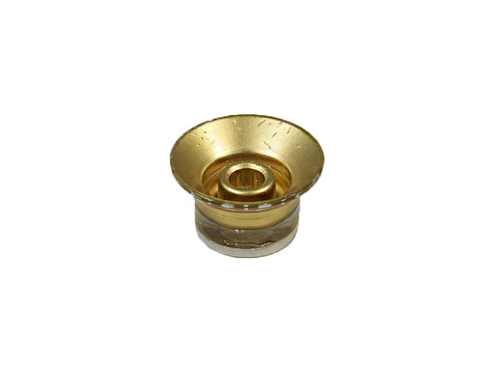 Wciskana, metryczna gałka Top Hat Reflector do gitar elektrycznych. Gałka tradycyjnie stosowana w gitarach SG. Pasuje idealnie do trzpieni z 18 wypustami występującymi w potencjometrach produkcji azjatyckiej. Można je również stosować z potencjometrami US przy odpowiednim ściśnięciu trzpienia.