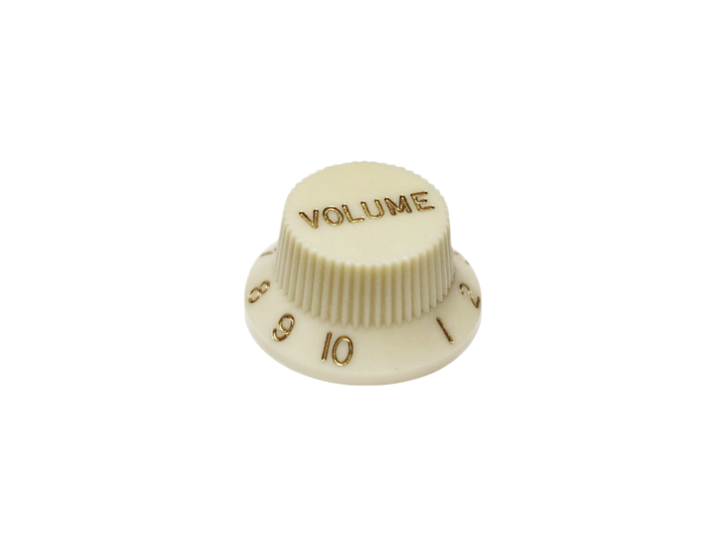 Wciskana calowa, gałka do gitar elektrycznych typu Stratocaster. Pasuje idealnie do trzpienie z 24 wypustkami występującymi w potencjometrach US (CTS, Bourns, Ernie Ball, Dimarzio etc). Można je również stosować z potencjometrami azjatyckimi przy odpowiednim ściśnięciu trzpienia.