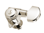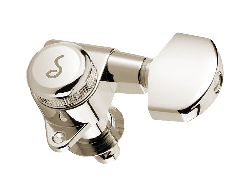 Klucz blokowany z serii M6. Klucz blokowany tradycyjnie pokrętłem z tyłu maszynki. Zamiennik takich popularnych modeli jak Grover 102, 502, Gotoh SG301 i wielu tanich kluczy ze srubką centralnie pod kluczem.