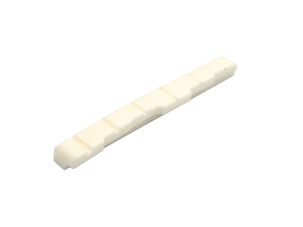 Gotowe, precyzyjnie nacięte w technologii CNC siodełko szyjki zkompensacją dla każdej struny, wykonane z selekcjonowanej kościnaturalnej. Kość naturalna jest używana od stuleci przez lutników jakosurowiec na siodełka szyjki i mostków w wielu instrumentach. Materiał tencharakteryzuje się bardzo dobrym, ciepłym brzmieniem i dobrą trwałością dzięki czemu jest to zdecydowanie lepszy wybór niż tanie, plastikowezamienniki.