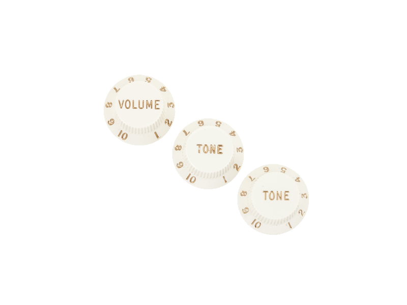 Komplet dedykowanych do calowych potencjometrow CTS, gałek firmy Fender® stosowanych w gitarach Stratocaster®