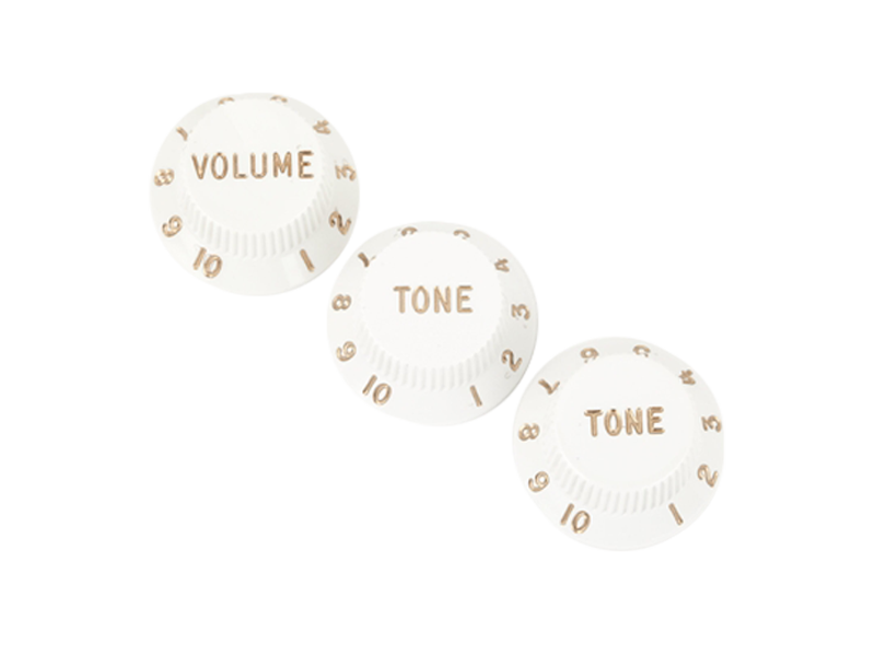 Komplet dedykowanych do calowych potencjometrow CTS, gałek firmy Fender® stosowanych w gitarach Stratocaster®