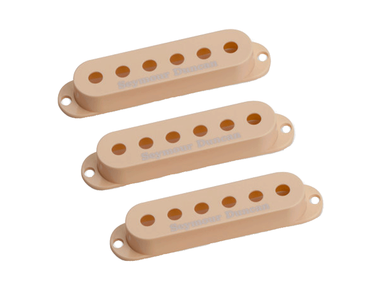 Komplet 3 oryginalnych osłon do przetworników single coil serii SSL z logo firmy Seymour Duncan (uwaga ! nie pasuje do SSL-4 Quarter Pound). Pasuje do większości przetworników innych producentów z rozstawem strun 52mm (np Fender American Standard).