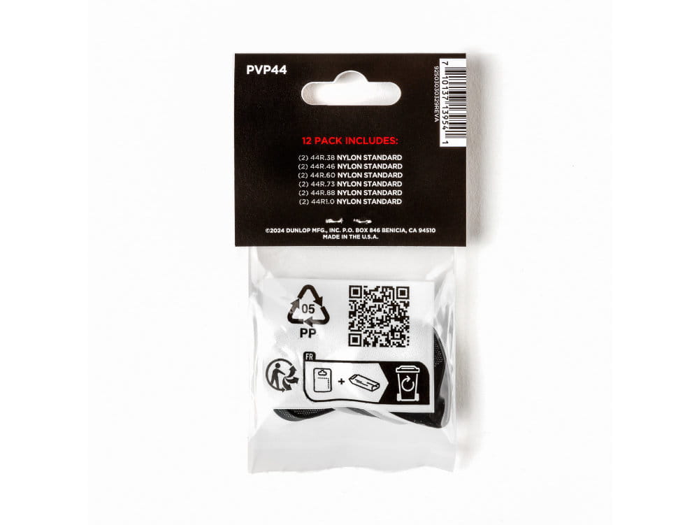 Komplet 12 kostek z serii Nylon Standard firmy Jim Dunlop. Nylon Standard to kostki które wyznaczyły standardy i wprowadziły klasyczną rozmiarówkę. Ten rodzaj kostek jest ciągle jednym, z najbardziej popularnych z oferty Dunlopa. Zestaw 12 kostek po 2 sztuki w 6 popularnych grubościach w jednej paczce.