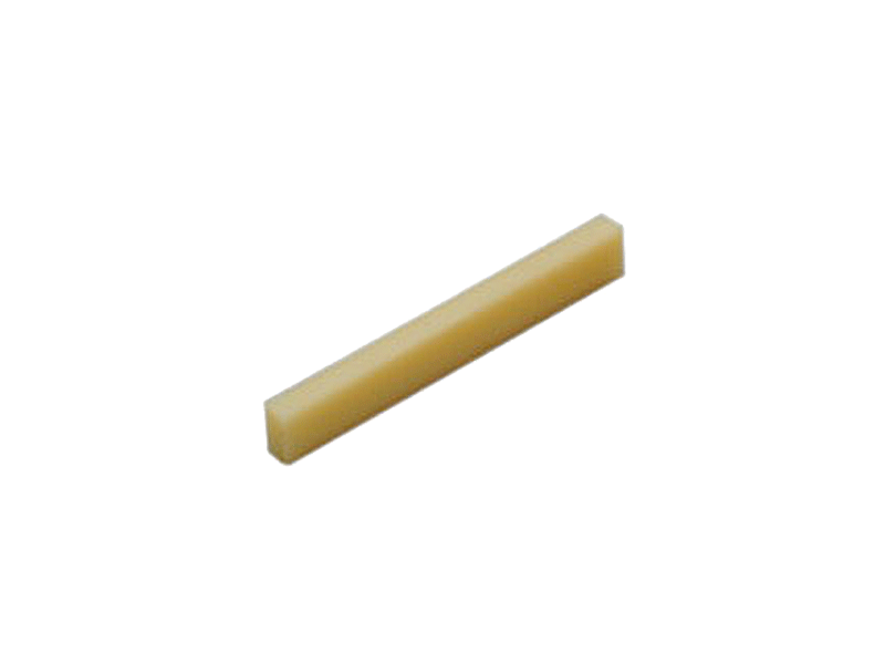 Materiał, surowiec do wykonania siodełka szyjki z kości naturalnej. Ta niebielona kość z argentyńskiej krowy, posiada dużą zawartość tłuszczu, która nadaje jej cętkowany, kremowy kolor przypominający skamieniałą kość słoniową. Doskonały, twardy materiał o świetnych parametrach brzmieniowych i vintageowym wyglądzie.