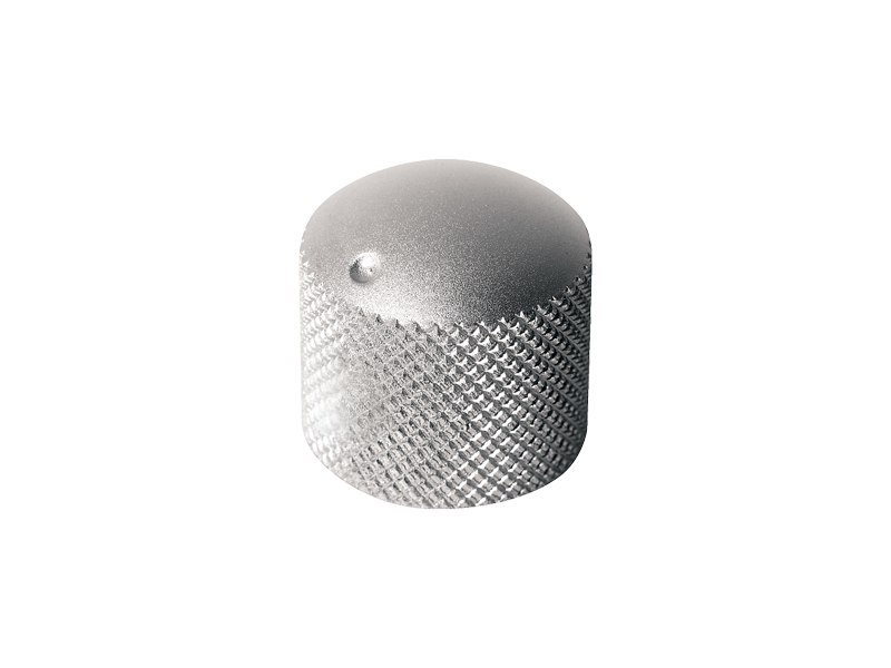 Metalowa gałka potencjometru blokowana śrubką, na 6mm trzpień.