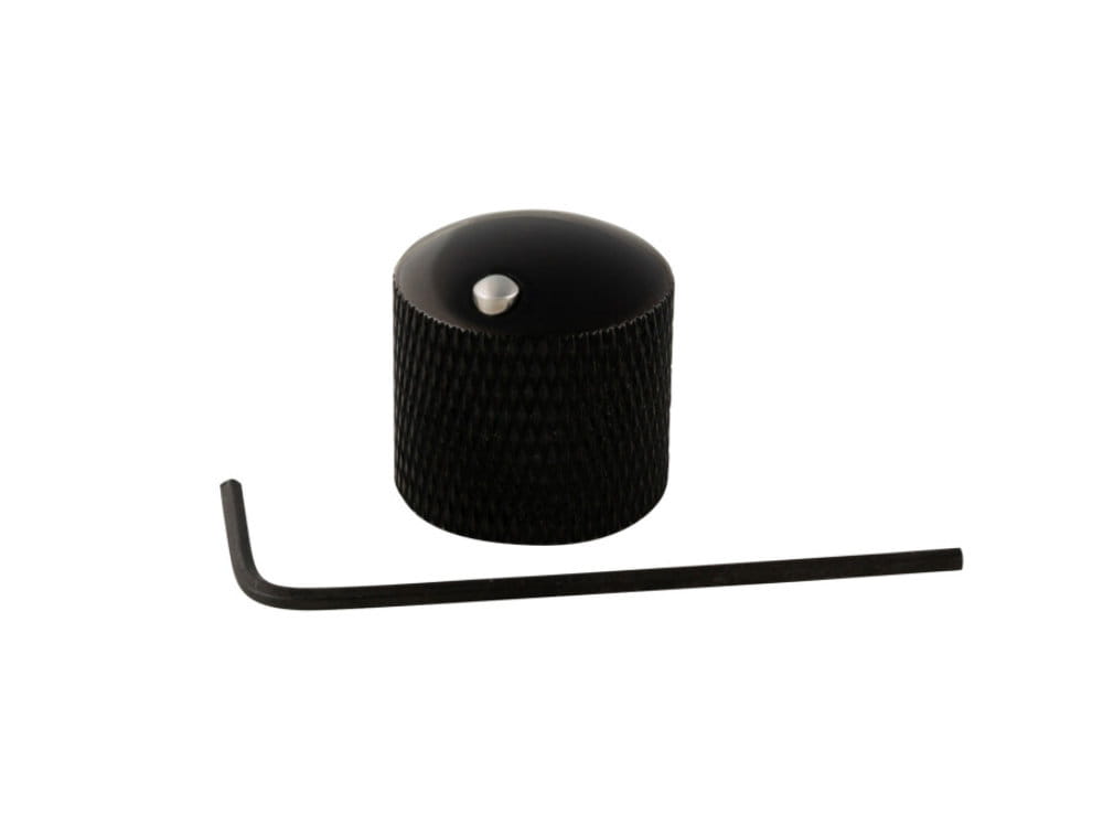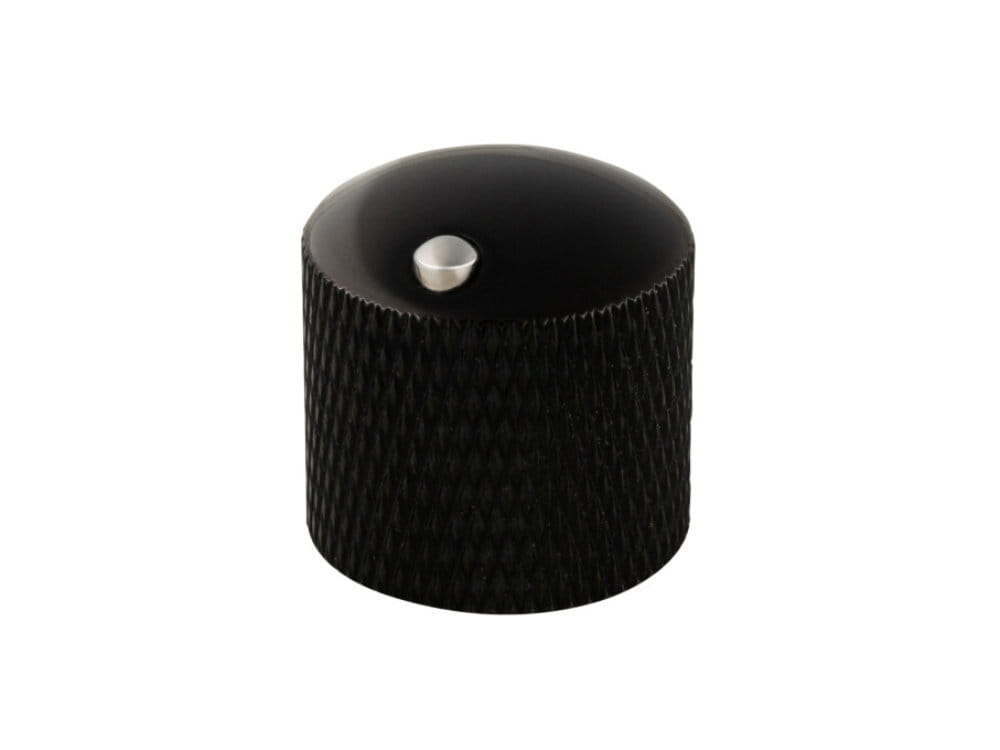 Metalowa gałka potencjometru blokowana śrubką ze znacznikiem, na 6mm trzpień.