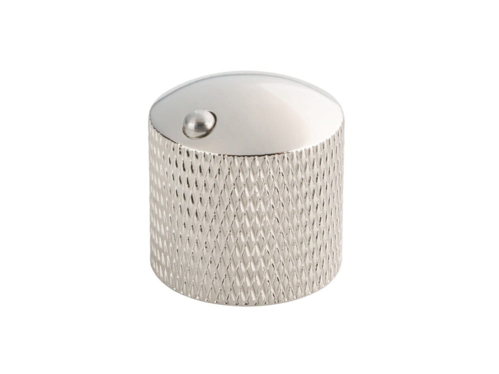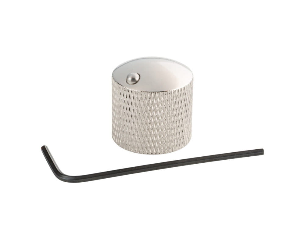 Metalowa gałka potencjometru blokowana śrubką ze znacznikiem, na 6mm trzpień.