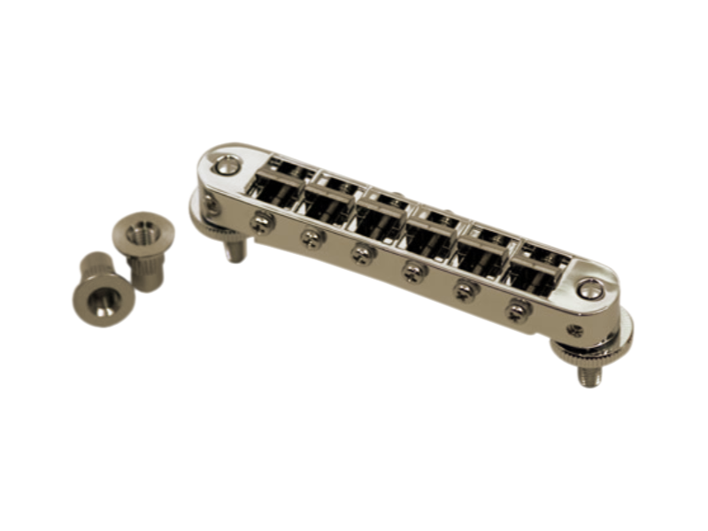 Wysokiej klasy, blokowany mostek typu tune-o-matic do gitar elektrycznych. Zamiennik tradycyjnych mostków wielu gitar USA na cienkich trzpieniach. Po wyregulowaniu wysokości mostka dwoma imbusami blokujemy go z trzpieniami tworząc sztywną całość. Taka konstrukcja poprawia sustein gitary. Kluczyk imbusowy w komplecie