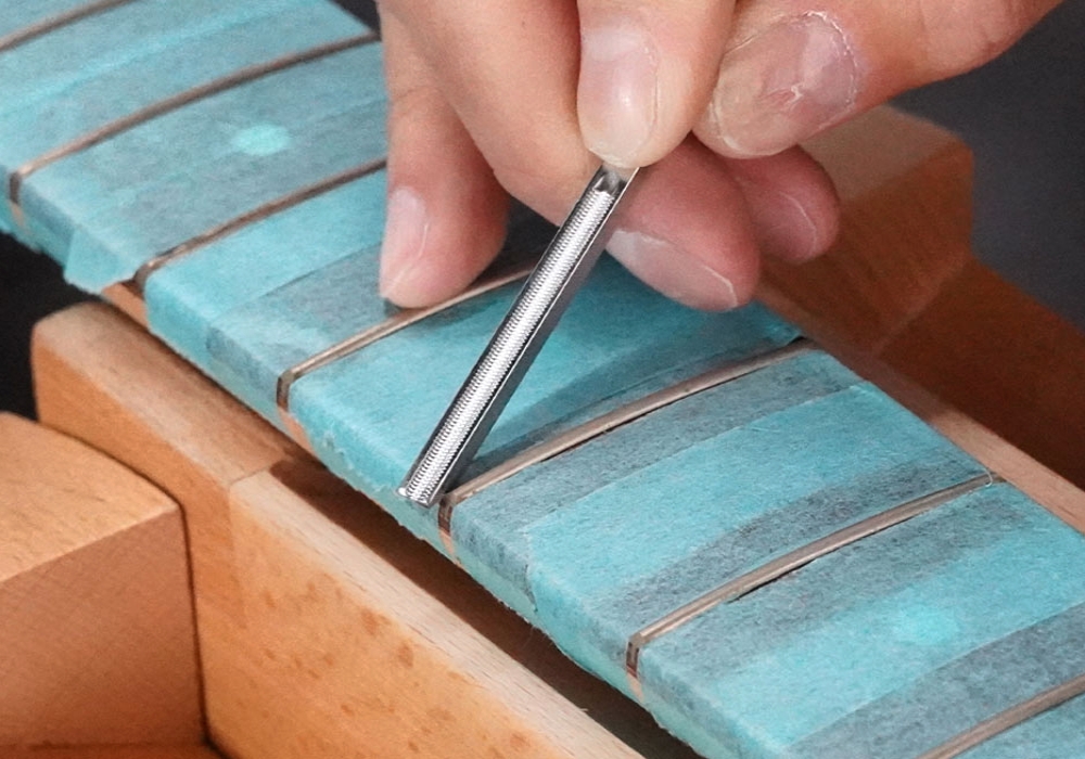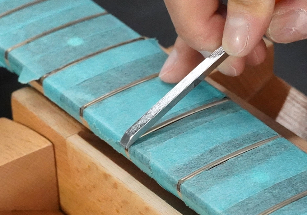 Profesjonalny japoński pilnik do wyrównywania zakończeń progów w instrumentach strunowych.