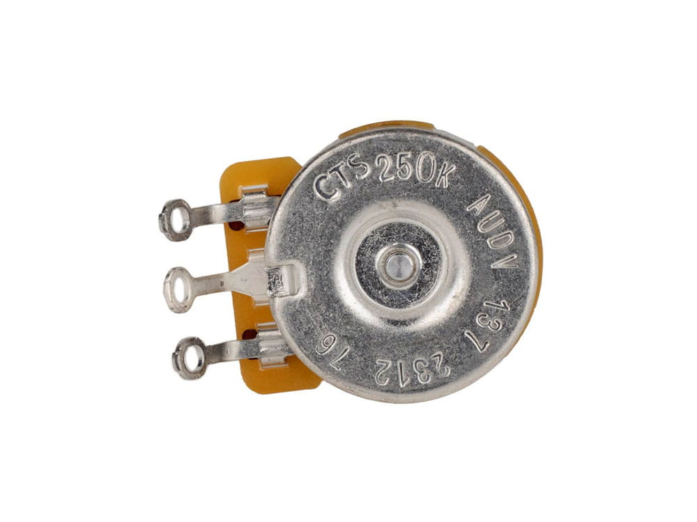 Potencjometry CTS to światowa pierwsza liga . Od lat stosowane przez takich producentów jak Fender, Gibson, Music Man. Potencjometry występują w 3 długościach trzpieni: krótkim (15mm) dedykowanym do montażu na pickguardach i płytkach kontrolnych, standardowym (18mm) do montażu w drewno gitary oraz długim (26mm) stosowanych w gitarach GIBSON Les Paul. Potencjometry audio (logarytmiczne) zazwyczaj stosuje się do głośności, liniowe do barwy. Dzieląc je pod względem rezystancji: 250K do przetworników single coil, 500K do humbuckerów i 25K do układów aktywnych.