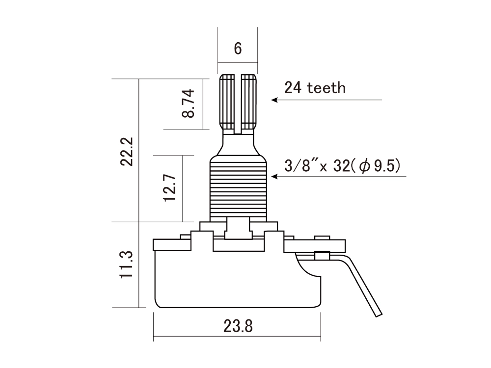Występują w trzech wariantach długości trzpienia: krótkim, przeznaczonym do montażu w płytkach kontrolnych i pickguardach, standardowym, stosowanym bezpośrednio w drewnie korpusu oraz długim, wykorzystywanym w instrumentach z grubym topem lub głęboką komorą montażową.