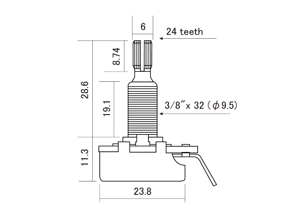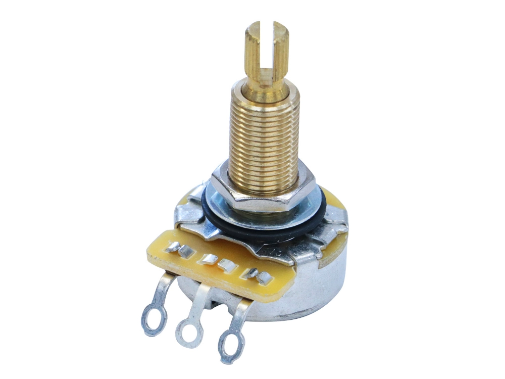 Występują w trzech wariantach długości trzpienia: krótkim, przeznaczonym do montażu w płytkach kontrolnych i pickguardach, standardowym, stosowanym bezpośrednio w drewnie korpusu oraz długim, wykorzystywanym w instrumentach z grubym topem lub głęboką komorą montażową. Dostępne są wersje audio (logarytmiczne), które najczęściej wykorzystuje się jako potencjometry głośności, oraz liniowe, rekomendowane do regulacji barwy dźwięku.
