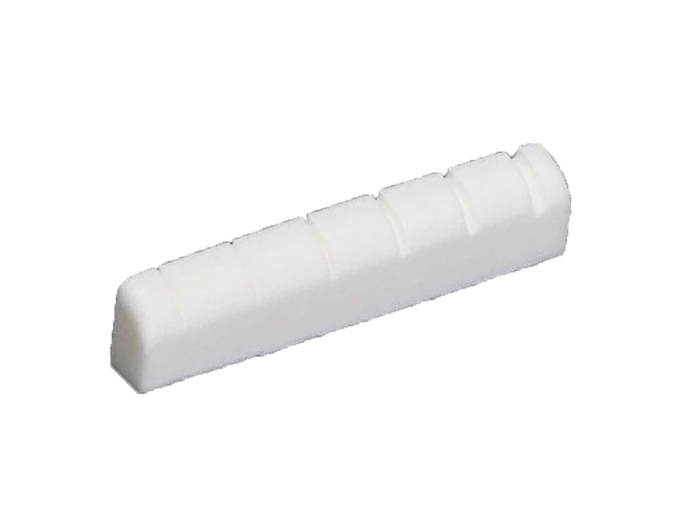 Gotowe, precyzyjnie nacięte w technologii CNC siodełko szyjki, wykonane z selekcjonowanej kości naturalnej. Kość naturalna jest używana od stuleci przez lutników jako surowiec na siodełka szyjki i mostków w wielu instrumentach. Materiał ten charakteryzuje się bardzo dobrym, ciepłym brzmieniem i dobrą trwałością dzięki czemu jest to zdecydowanie lepszy wybór niż tanie, plastikowe zamienniki.