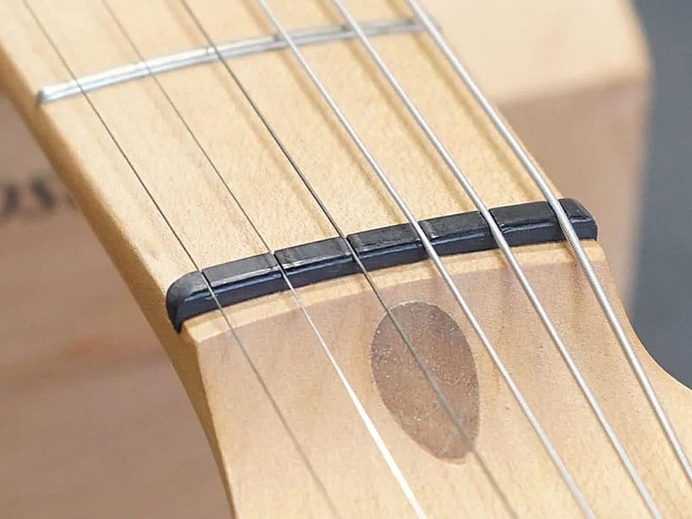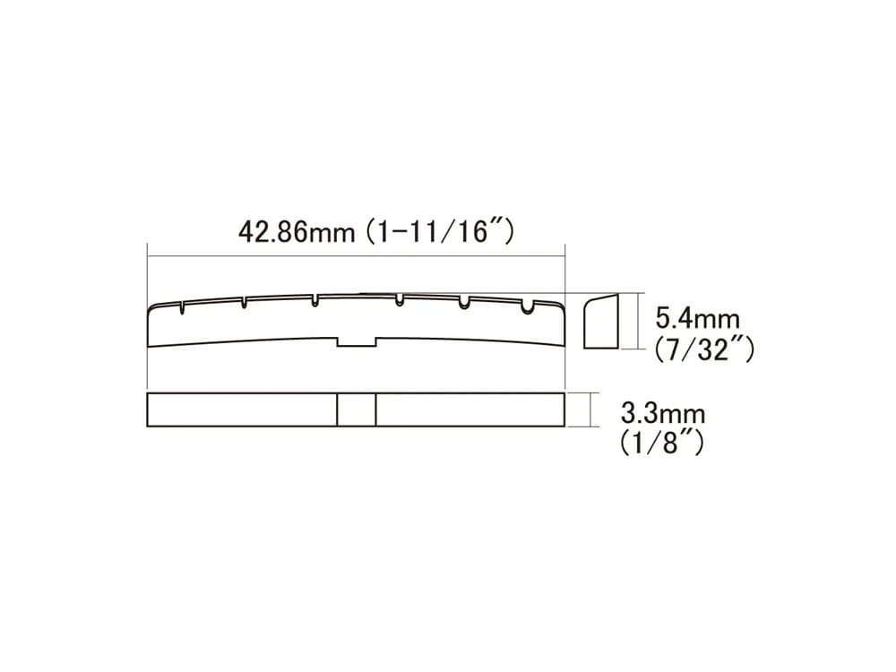 Gotowe, precyzyjnie nacięte w technologii CNC siodełko szyjki, wykonane z czernionej kości naturalnej. Kość naturalna jest używana od stuleci przez lutników jako surowiec na siodełka szyjki i mostków w wielu instrumentach. Materiał ten charakteryzuje się bardzo dobrym, ciepłym brzmieniem i dobrą trwałością dzięki czemu jest to zdecydowanie lepszy wybór niż tanie, plastikowe zamienniki.