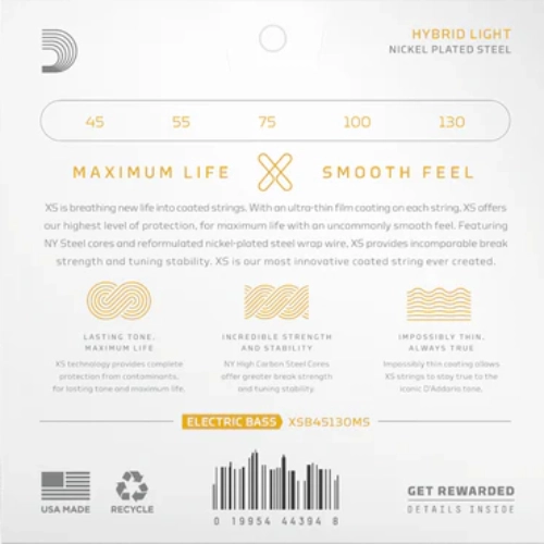 D’Addario XS Nickel Bass to nowoczesne struny basowe z niklowaną owijką i ultracienką powłoką ochronną, która zapewnia gładkie odczucie, długą żywotność oraz dynamiczne, zbalansowane brzmienie. Ulepszona konstrukcja z rdzeniem NY High Carbon Steel gwarantuje stabilność strojenia i wysoką odporność na zerwanie, przy zachowaniu klarowności i naturalnego charakteru dźwięku.