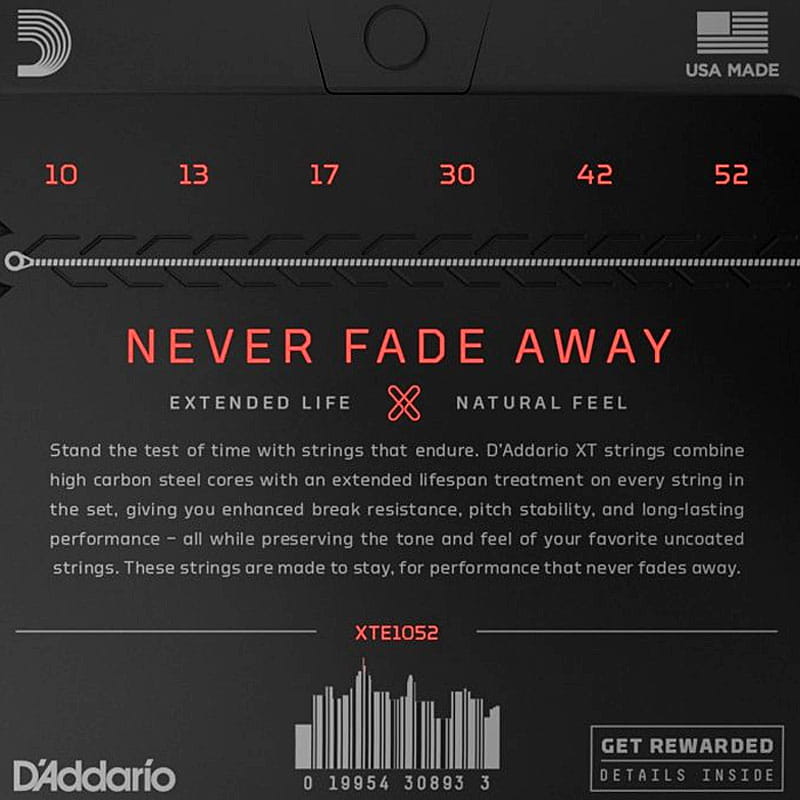 Firma D'Addario to jeden z najbardziej popularnych producentów strun na świecie. Ta rodzinna firma posiada tradycję tworzenia strun od XVII w. i z powodzeniem łączy ją z najnowyszymi materiałami i technologią, oferując rewelacyjne struny do praktycznie każdego instrumentu. Struny D'Addario są wybierane przez najlepszych muzyków niezależnie od stylu czy instrumentu na którym grają. D’Addario XT to najnowsza lini a strun tego uznanego producenta. Podstawowe cechy tej serii to, super grywalność, rewelacyjna powłoka zapewniająca długą żywotność, odporność na zrywanie i naturalne brzmienie.
