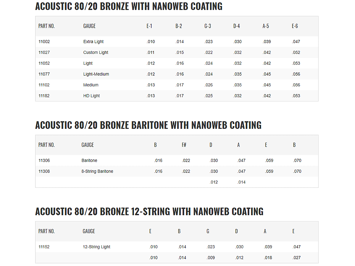 Struny Elixir dostępne są w kilku rodzajach oferując różne brzmienie oraz właściwości fizyczne.