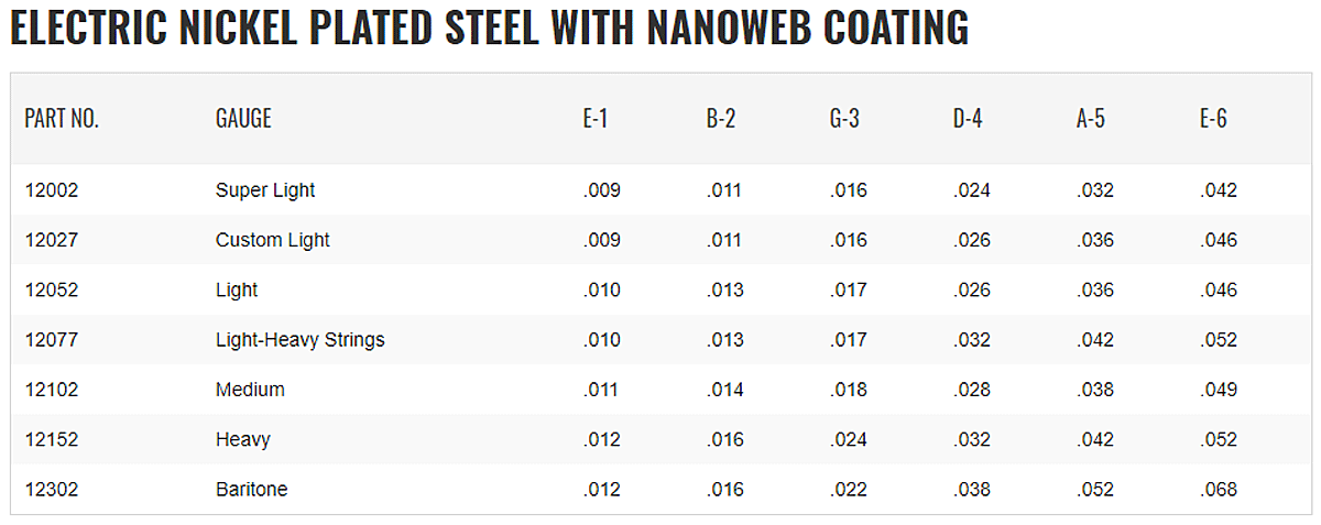 Struny Elixir dostępne są w kilku rodzajach oferując różne brzmienie oraz właściwości fizyczne.