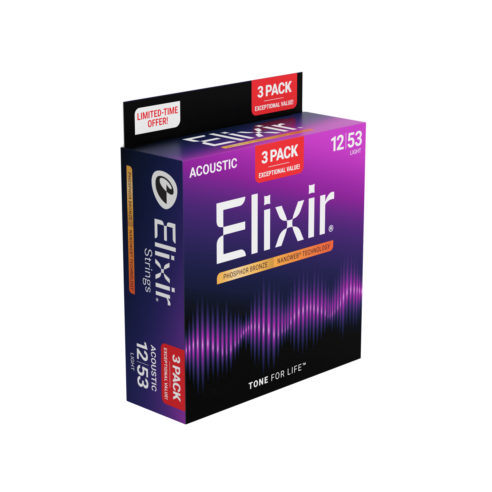 Elixir Light Phosphor Bronze (12-53) NW - potrójny zestaw strun do gitary akustycznej