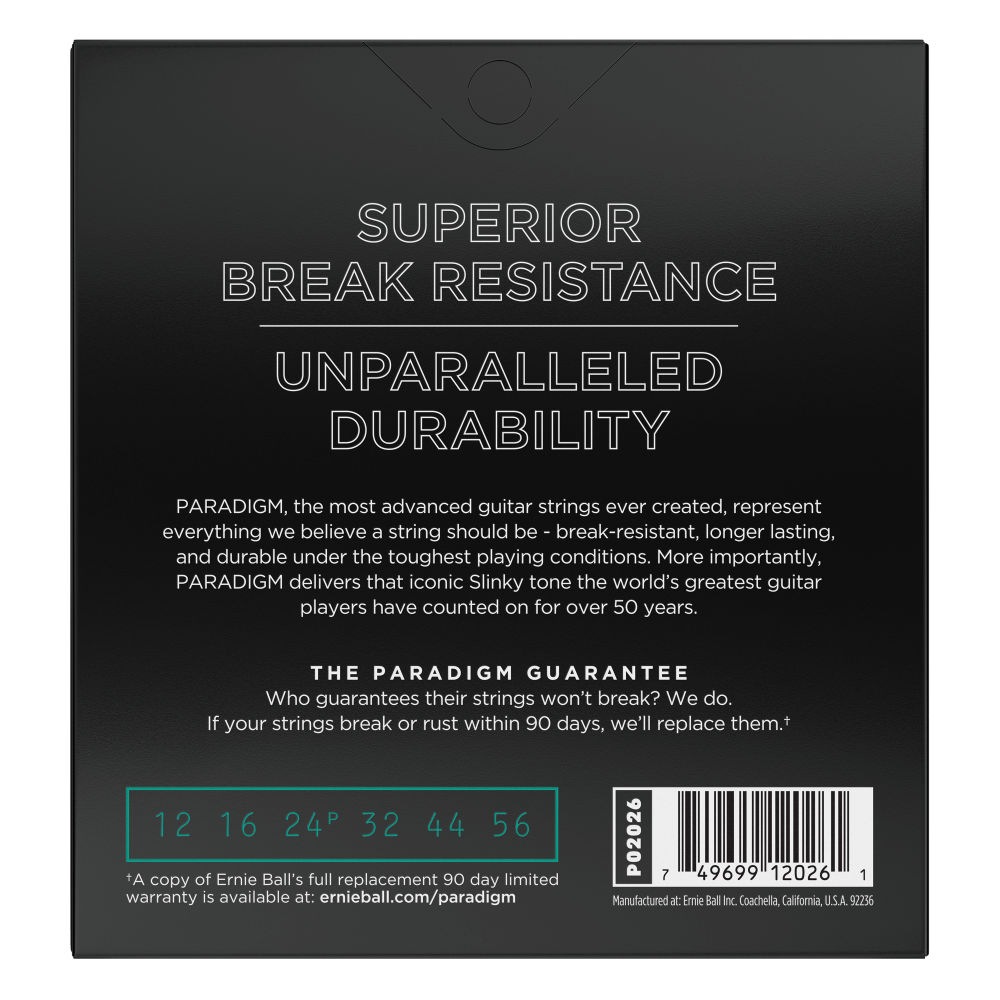 Ernie Ball Slinky Paradigm Electric to struny o niespotykane. Ich wytrzymałość fizyczna jest większa nawet o 70% od standardowych strun a żywotnością brzmienia nie ustępują najlepszym na rynku strunom powlekanym dzięki zastosowaniu nowatorskich technologii. Struny z serii Paradigm zostały wykonane z najwyższej klasy metali i poddane serii autorskich zabiegów takich jak plazmowanie i nanopowłoka Everlast. To jedyne struny na rynku których producent daje 90-dniową gwarancję na pękanie i rdzewienie!