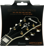 Struny Ibanez do gitary elektrycznej hollow body ze stali nierdzewnej z płaską owijką.