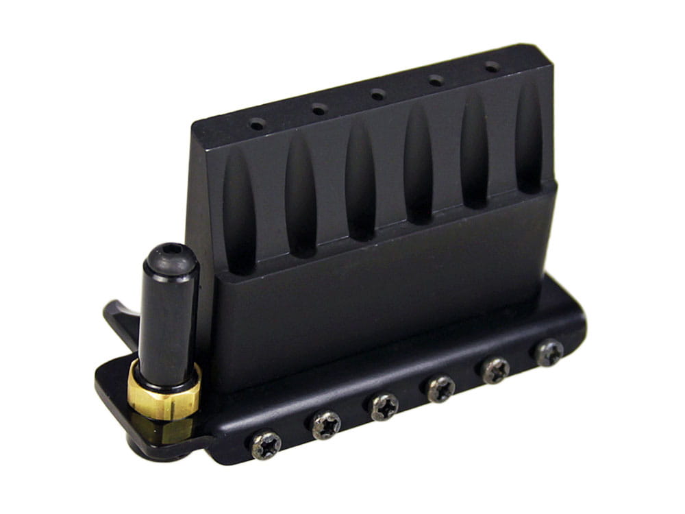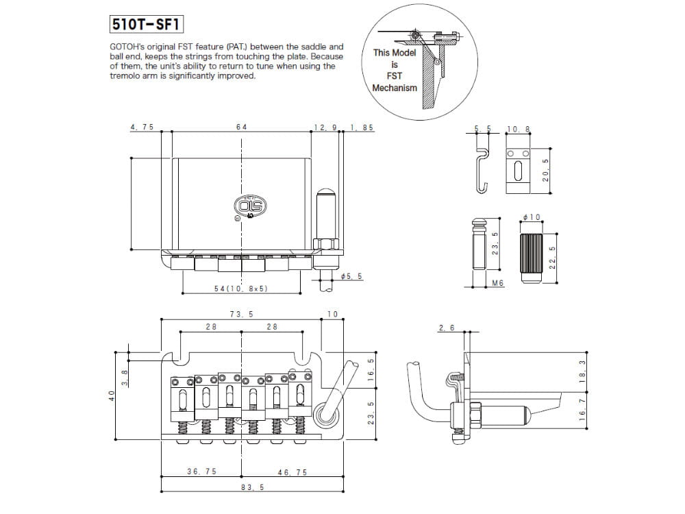Rewelacyjne tremolo japońskiej firmy GOTOH. Podstawa i noże mostka wykonane są ze stali chromowo-molibdenowej o bardzo wysokiej twardosci zapewniającej długotrwałą stabilną pracę mostka. Tremolo z blokiem typu T z opatentowanym przez firmę GOTOH sposobem osadzenia strun w mostku. Struny opierają się tylko na siodełku mostka co zdecydowanie zwiększa sustain oraz stabilność stroju.
