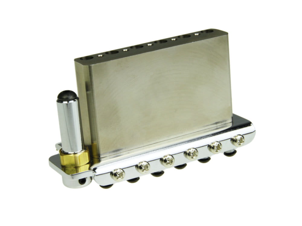 Podstawa i noże mostka wykonane s± ze stali chromowo-molibdenowej o bardzo wysokiej twardosci zapewniaj±cej długotrwał± stabiln± pracę mostka. Tremolo z pełnym blokiem wykonanym z wysokogatunkowej stali nierdzewnej. Gniazdo ramienia posiada tulejkę któraeliminuje luz a samo ramię posiada wewnętrzny gwint i jest wkręcane w gniazdoco zapewnia idealn±, gładk± pracę mostka.